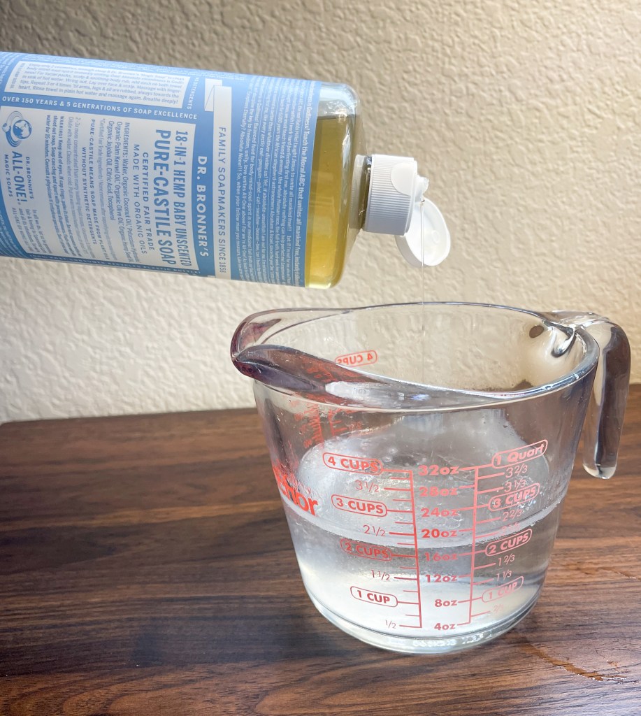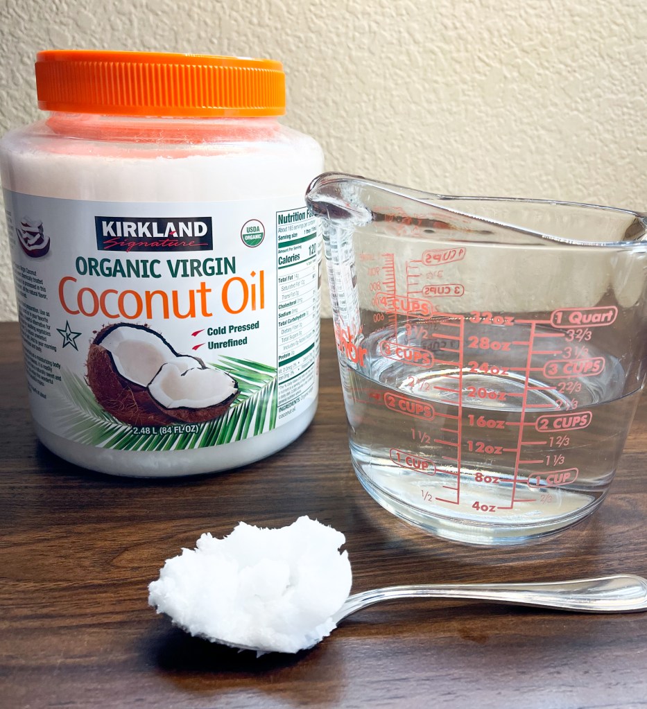 Mix the coconut oil into the warm water and stir until completely dissolved